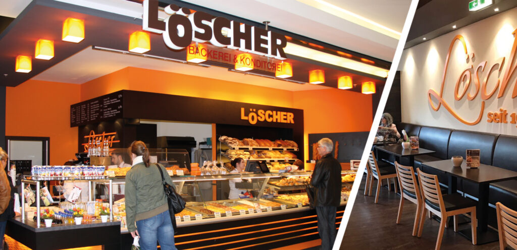 Für das leibliche Wohl sorgt die Bäckerei Löscher an allen Wochentagen (auch sonntags) im Erdgeschoss. Unsere Kunden können hier entspannen und traditionelle Backwaren aus eigener Herstellung genießen.